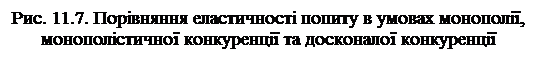 Ринок монополістичної конкуренції займає проміжне місце між монопольним ринком та ринком досконалої конкуренції. Еластичність попиту на продукцію фірми залежить від числа конкуруючих фірм та від ступеня диференціації продукції – чим більшим є число конкурентів та слабше диференціація продукції, що виробляється (продукт буде більш однорідним) – крива попиту буде більш еластичною, тому, що ситуація схожа до досконалого конкурентного ринку.