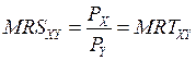 Рівність MRT= MRS означає, що не існує способу покращити становище споживачів за рахунок змін у виробництві даних благ. У цьому випадку досягається повна ефективність розподілу ресурсів економіки, яка відповідає критерію Парето-оптимальності. Це означає, що конкурентна рівновага у ринковій економіці Парето-ефективна за розподілом ресурсів у сфері споживання, обміну і виробництва. Вона забезпечує оптимальність структури економіки, збалансованість інтересів споживачів і виробників. Загальні умови ефективності досконало конкурентної економіки описуються системою рівнянь: – рівновага у конкурентній економіці ефективна за споживанням та обміном, якщо: – рівновага виробника у конкурентній економіці ефективна за розподілом ресурсів між галузями, якщо: – рівновага є ефективною за використанням ресурсів у виробництві, якщо: