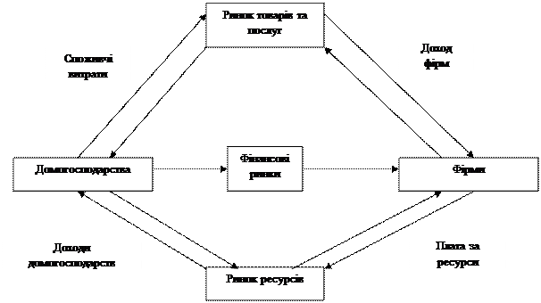 Рис. 1.1. Модель кругообігу продуктів і доходів