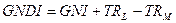 Валовий національний наявний доход (GNDI) – дорівнює валовому національному доходу плюс поточні трансферти, одержані резидентами з-за кордону, мінус поточні трансферти, передані за кордон: