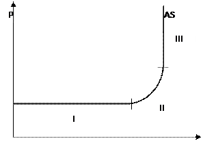 З аналізу довгострокової та короткострокової пропозиції випливає, що крива сукупної пропозиції має три відрізки: горизонтальний (кейнсіанський, І), проміжний (висхідний, ІІ), вертикальний (класичний, ІІІ), які показані на рис. 4.8.