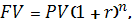де r – ставка дисконту, така ставка відсотка, яка використовується для приведення поточних грошей до їхньої майбутньої вартості в періоді, що береться за базу розрахунків; n – кількість років майбутнього періоду. Теперішня вартість майбутньої вартості грошей – це нинішній еквівалент суми коштів, що буде отримана або витрачена в подальшому періоді. Таку вартість називають дисконтованою.