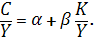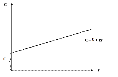 с – гранична схильність до споживання; ОНД – особистий наявний дохід домогосподарств. Сучасні макроекономісти модифікували кейнсіанську теорію споживання – особистий наявний дохід домогосподарств прирівняли до наявного доходу приватної економіки, тобто ОНД = Y. Така трактовка опирається на розширене тлумачення корпоративної власності на капітал, згідно з яким домогосподарства безпосередньо є власником робочої сили, а опосередковано – акціонерами основного капіталу. Тому у підсумку всі приватні підприємства і весь дохід приватної економіки, тобто ВВП, належить домогосподарствам. За цих умов кейнсіанська функція споживання трансформується до такого вигляду: