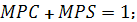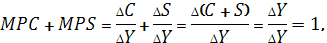 Не важко помітити, що якщо C+S=Y, то Δ C+Δ S=Δ Y. Таким чином сума граничної схильності до споживання і граничної схильності до заощадження дорівнює 1: