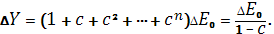 Враховуючи, що гранична схильність до споживання менша за одиницю, знаходимо суму ряду, який є нескінченно спадною геометричною прогресією: