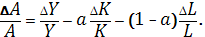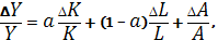 1-а – частка праці в продукті. Отже, темп приросту Слід звернути увагу, що приріст сукупної продуктивності праці факторів виробництва ( Тому приріст сукупної продуктивності праці факторів виробництва обчислюється за залишковим принципом за формулою:
