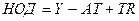 У наведеній функції наявний особистий дохід (НОД) дорівнює ВВП. З появою держави податки (Т) зменшують наявний дохід домогосподарств, а трансферти збільшують його Наявний особистий дохід з урахуванням впливу держави буде дорівнювати:
