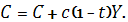 Функцію споживання можна визначити з урахуванням податкової ставки, за якою будуть розраховуватися податки залежно від доходу. Цей зв’язок можна показати так: