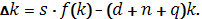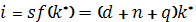 3. Технічний прогрес. Його вплив на капіталоозброєність проявляється через зростання ефективності праці з постійним темпом q. Зростання ефективності праці розглядається як аналогічне зростання чисельності населення. Наприклад, якщо технічний процес забезпечує зростання з темпом 2%, то 100 робітників можуть виробляти стільки продукції, скільки раніше виробляли 102. Таким чином, якщо чисельність зайнятих зростає з темпом n, а Е зростає з темпом q, то кількість ефективних одиниць праці Зміна капіталоозброєності від усіх трьох чинників визначається за формулою:
