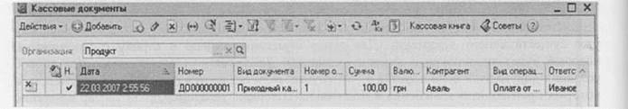 Рисунок 7 Екранна форма журналу операцій (документ - Прибутковий касовий ордер – не проведений)
