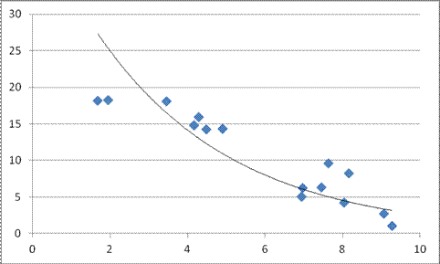 Для того, щоб отримати на екрані результат, натискаємо спершу клавішу F2, а потім Ctrl+Shift+Еnter. Отже, гіперболічнамодель залежності Y від X має вид: