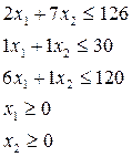 Зведемо задачу лінійного програмування (6.3 6.4) до канонічної форми додавши невідомі х3, х4 та х5 до лівої сторони двох нерівностей відповідно: