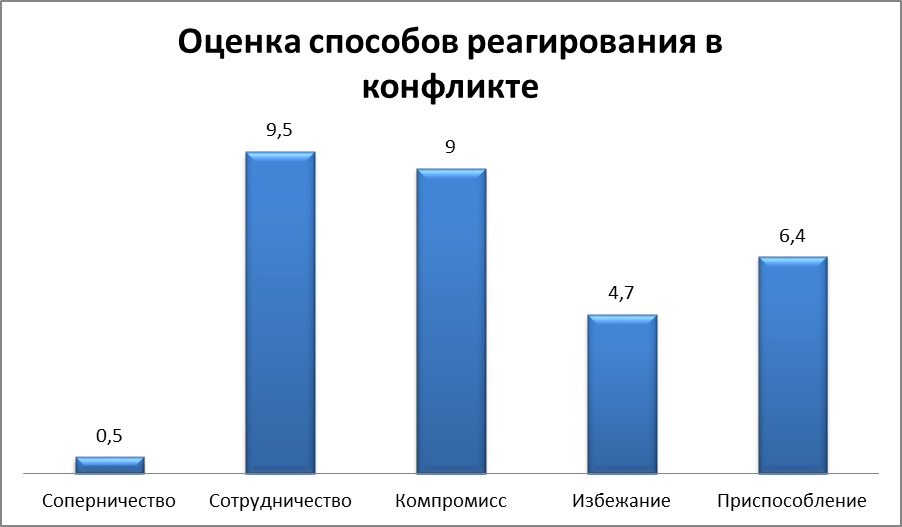 Результаты методики представлены в таблице 1 и диаграмме 1. Таблица 1. Методика оценки способов реагирования в конфликте (К.Н.Томас)