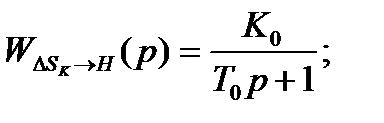 Розглянемо питання вибору закону регулювання. Як об'єкт регулювання рівня, деаератор є герметичним баком з насосом на зливі, тобто не володіє самовирівнюванням. Його передаточна функція W(S) = K/S. Застосування ПІ-закону регулювання для такого об'єкту приводить до тривалого коливального процесу регулювання, що небажано. Крім того, для деаератора допускається нерівномірність регулювання. Тому застосуємо П-закон регулювання, який реалізується обхватом ПІ-регулятора жорстким зворотним зв'язком по положенню регулюючого органу. Рівень в деаераторі вимірюється перетворювачем САФІР 22, сигнал від якого поступає на регулятор, де порівнюється з сигналом завдання. Таким чином, на вхід регулятора поступають два сигнали: по рівню в деаераторі і по положенню клапана. Настройкою регулятора є " коефіцієнт пропорційності" для вказаних двох входів. При регулюванні рівня води в деаераторі П-регулятором передаточна функція замкнутої системи регулювання за збурюючим (витрата води) каналом описується передаточною функцією, як було сказано вище (W(S) = K/S), об’єкта регулювання за каналом, зміна положення клапана на вході – зміна рівня на виході має вигляд: