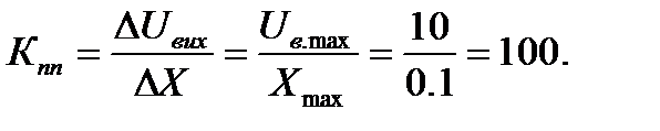 Коефіцієнт передачі виконавчого механізму визначається як відношення зміни ходу вихідного штока до зміни керуючої напруги: