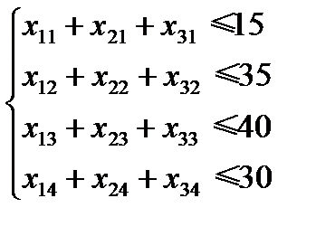 Следовательно, условие сбалансированности не выполнено. 1.4. Запишем систему ограничений: По потребителю: мощности поставщиков меньше мощности потребителей, следовательно, кто-то из потребителей получит груза меньше, чем его потребность Количество груза, которое потребитель Аналогично строятся ограничения по другим потребителям. Так как в задаче заранее не оговаривается, потребности какого потребителя не будут удовлетворены, знак
