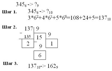 В этом параграфе рассмотрим перевод целых чисел из произвольной системы счисления в систему счисления с произвольным основанием.