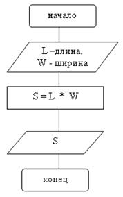 Рис.3 Алгоритмы с линейной структурой являются простейшими и используются, как правило, для реализации простых вычислений. Рассмотрим линейную структуру на следующем примере. Пример №1. Вычислить площадь параллелограмма. Последовательность действий при решении данной задачи описана блок-схемой алгоритма, представленной на рис.4.