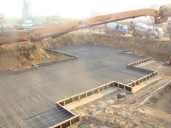 Устройство фундаментов для многоэтажных зданий. Ленточный монолитный фундамент представляет собой железобетонную полосу, идущую по всему периметру здания. Также данный тип фундамента называют универсальным, так Столбчатый монолитный фундамент представляет собой конструкцию из сообщающихся столбов. Столбы устанавливаются в углах будущего сооружения, в местах пересечения стен, под предполагаемыми тяжелыми конструкциями. Пространство между столбами заполняется щебнем или крупнозернистым песком, затем всё заливается толстым слоем раствора бетона или железобетона. Обычно, подобная конструкция используется при строительстве построек легкого типа. Сплошной фундамент-монолит закладывается под всей площадью здания, что снижает и распределяет давление, передаваемое конструкцией. Таким образом, цельная конструкция фундамента препятствует разрушению здания при сильных деформациях почвы. Данный тип фундамента обычно возводится на пучинистых и подвижных грунтах. Эти характеристики оправдывают высокую стоимость устройства фундамента. Сплошной фундамент требует проведения большого объема земляных работ, а также большого расхода материалов(арматуры, бетона), что значительно повышает его стоимость по сравнению с ленточным фундаментом. 2. Свайный фундамент.