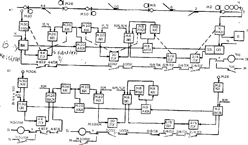 Основные принципы работы схем маршрутного набора в структурном вигде поясняются на рис.I. При наборе маршрута приема по светофору Ч на II путь ДСП нажимает кнопку светофора Ч. В блоке НПМ светофора Ч включается кнопочное реле НКН. Нажатие начальной кнопки определило категорию устанавливаемого маршрута, поэтому в блоке направления НН включается реле направления П, которое включит питание на шину направления Ч. При условии появления питания Ч и включения кнопочного реле в блоке НПМ включатся противоповторные репе ОП и ПП. На табло у основания повторителя светофора Ч включится световая полуячейка. Нажатие кнопки приемо-отправочного пути 2П вызовет в блоке НПМ светофора МЗО включение кнопочного реле НКН, Так как шина направления Ч получает питание, то в этом же блоке включится конечное реле ВК, На табло у повторителя светофора МЗО загорится световая полуячейка. Далее работа схемы происходит автоматически. По второй цепи межблочныхсоединений, проходящей через блоки наборной группы всех элементов станции устанавливаемого маршрута, включаются автоматические кнопочные реле АКН в блоках промежуточных маневровых светофоров М8 и М10. Начало цепи подключается контактами реле ОП, ПП. Другой полюс питания включается контактом реле ВК. Автоматические кнопочные реле осуществляют включение кнопочных репе своих блоков. В блоке HMI светофора М8 включаются одновременно реле НКН и КН. Реле АКН блока НМ2АП светофора М10кроме кнопочного реле своего блока включит кнопочное реле соседнего блока светофора М26. В указанных блоках ча шинах Н, Ч имеется полюс питании, поэтому включение кнопочных репе вызовет включение вспомогательных промежуточныхреле ВП. Последние своими контактами образуют индивидуальные схемывключения Рисунок 1 плюсовых ПУ или минусовых МУ управляющих реле, которые являются третьими цепямимежблочныхсоединений. Со стороны начала маршрута полюс питания подключается через контакты включенных реле ОП, ПП, со стороны конца маршрута -через контакты ВК. Управляющие реле включают пусковые цепи схем управлении электроприводами участвующих в маршруте стрелок. Стрелки устанавливаются в соответствующее маршруту положение. Контактами реле ПУ, МУ выключаются кнопочные реле (см. пунктирные линии на рис.1). Контроль исполнения команды.на перевод стрелок производится схемой соответствия (4 цепи межблочных соединений)- Полюс питания в схему со стороны конца маршрута подключается контактом реле.ВК. В Начале схемы соответствия контактом реле ПП через контакт замыкающего реле 3 Первой в маршруте секции включается обмотка начальногореле Н. На рис.I, б приведена структурная схема работы приборов набора при установке сложного маневрового маршрута от светофора М30 за светофор М2. Маршрут состоит из двух простых маневровых маршрутов: от М30 до М10 и от М10 за М2. Так как устанавливаются нечетные маневровые маршруты, то при нажатии Начальной кнопки М30 в блоке НН включается реле ОМ и подключается полюс питания к шине направления НМ. Это определяет включение реле М2ВКМ, М6ВКМ, М10МП. Формируются две схемы соответствия, по которым включаются реле М30НМ и М10НМ.
