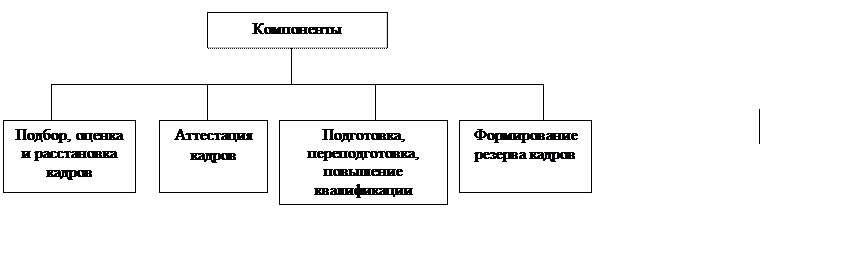 Рис. 2 - Основные компоненты кадрового обеспечения муниципального обеспечения. Подбор, оценка и расстановка муниципальных служащих Подбор муниципальных служащих заключается в установлении пригодности (оценке) работников и отборе наиболее подготовленных для выполнения обязанностей по определенной должности муниципальной службы. Расстановка муниципальных служащих предполагает обоснованное и экономически целесообразное распределение работников по структурным подразделениям и должностям в соответствии с уровнем и профилем подготовки, опытом работы, деловыми и личностными качествами. При подборе кадров муниципальной службы может быть предусмотрен конкурс на замещение соответствующих должностей. При этом, наряду с оценкой уровня и профиля образования претендента, квалификации, стажа, направлений предыдущей деятельности и других формальных показателей, важной становиться оценка его личностных качеств и совместимости с кружением. Главная задача – оценить относительно устойчивые признаки личности будущего муниципального служащего, его потенциал. Среди методов отбора кандидатов на замещение должностей в местных администрациях выделяют выборы и назначение. Эти методы могут быть использованы для всех групп кадров. Исключение составляет должность главы муниципального образования (а также некоторые другие должности), требующие, в соответствии с уставом муниципального образования, обязательного проведения выборов. В качестве конкурсной комиссии может выступать население либо представительный орган муниципального образования. Особый порядок проведения конкурса установлен Федеральным законом 2003г. для главы местной администрации, не являющегося главой муниципального образования. Условия сведения о дате, времени и месте проведения конкурса, а также проект контракта с главой администрации должны быть опубликованы не позднее чем за 20 дней до дня проведения конкурса. В городских округах и муниципальных районах 2/3 членов конкурсной комиссии назначаются соответствующим представительным органом, а 1/3 – законодательным (представительным) органом субъекта РФ по представлению высшего должностного лица субъекта Российской Федерации. На практике прием кадров на муниципальные должности чаще всего осуществляется в основном по формальным критериям (квалификация, стаж работы в органах местного самоуправления). Конкурсы на замещение вакантных должностей проводятся редко. При отборе муниципальных служащих с претендентами проводится собеседование, цель которого – дополнить данные письменных источников. Для выявления у кандидата качеств, необходимых для замещения вакантной должности муниципальной службы, может быть проведено анкетирование. Для оценки претендентов на муниципальную службу иногда полезно использовать тестирование. Оно заключается в решении претендентом заранее подготовленных задач (тестов) по какой – либо проблеме из соответствующей сферы муниципальной деятельности и установлении на этой основе количественных показателей, определяющих уровень кандидата. Подход с позиций коллектива позволяет наличием определенных качеств у одного работника возместить нехватку аналогичных качеств у другого. Аттестация муниципальных служащих Для определения уровня профессиональной подготовки муницип