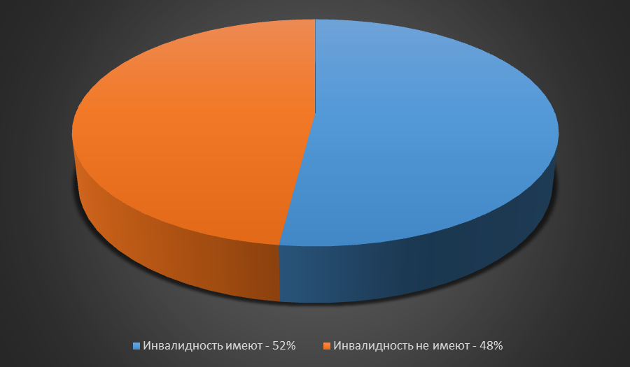 Далее было проведено исследования по соотношению больных имеющих инвалидность по данному заболеванию Рис 5. Процентное соотношение больных имеющих группу инвалидности Вывод: По нашим данным больше половины пациентов с пояснично-крестцовым радикулитом имеют группу инвалидности Далее было проведено исследования по соотношению выживших и погибших после операции на позвоночник путем получения статистических данных за 2 года (рис.5).