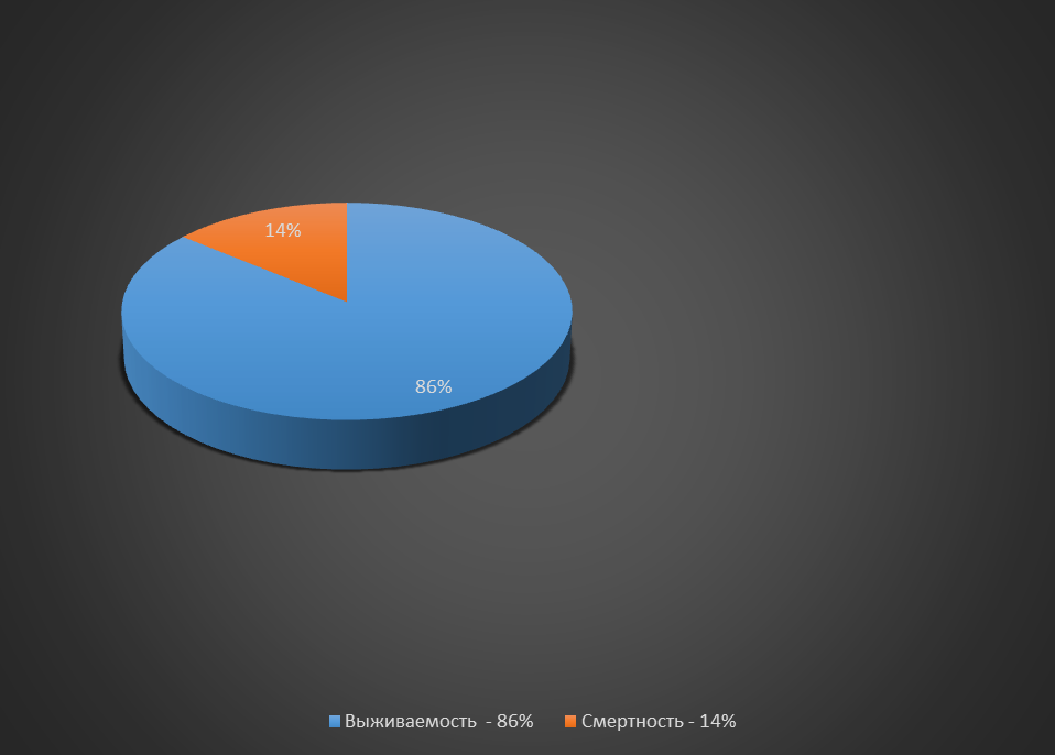 Рис.5. Соотношение выживших и погибших. Вывод: По полученным данным благополучное перенесение операции на позвоночник в 6 раз превышает