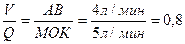 [ДЛО2] = мл/мин мм рт ст ДЛО2 = 25 мл/мин мм рт ст в состоянии покоя. Если легкие растягиваются, то х ↓ => ДЛО2↑. ДЛО2max=65-70 мл/мин мм рт ст Д = 25 мл/мин мм рт ст* х 60мм рт ст = 1500 мл/мин = 1, 5л/мин. II. Соотношение вентиляции к перфузии (кровотоку) (V/Q) В норме V/Q≈ 0, 8-1;