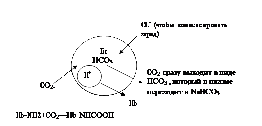 При нагрузке ↑ рСО2. ↑ [Н+] (↓ рН) ↑ t ↑ (2, 3 – ДФГ(дифосфоглицерат)) => сдвиг вправо = ↓ сродства. НвкО2 = ↑ диссоциации. НbО2. СО имеет высокое сродство к Нb, при замене Fе (II) к Fе (III) – метНb Транспорт СО2. СО2 транспортируется в 3 формах: 1. растворенный СО2 (≈ 1/20; 5%); 2. карбНb (в виде соединения с Нb); 3. НСО3- (в виде солей) ≈ 83%. Венозная кровь транспортирует 58 мл СО2. в 100 мл крови (≈ 58 объемных %). В Er есть фермент карбангидрат (КА) СО2.+Н2О↔ Н2СО3↔ Н+ + НСО3- рНарт крови = 7, 4; рН вен. крови =7, 36, связано с работой рН буферной системой. Суммарная реакция переноса Нb для СО2 и О2: 1. СО2+Н2О↔ Н2СО3↔ Н++НСО3- 2. НbО2 → Нb+О2 К+ присоединяется к более сильной к-те. КНbО2 +СО2.+Н2О↔ Нb+О2.↑ +КНСО3 (О2 уходит). Свойства Нb: * Нb – слабая к-та (ННb < Н2СО3, но если присоединяет О2НbО2 тоже слабая к-та, но сильнее Н2СО3 уже). Диффузия газов в тканях: