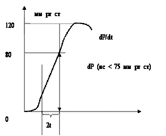 2. скорость прироста давления в левом желудочке в изометрическую фазу сокращения.