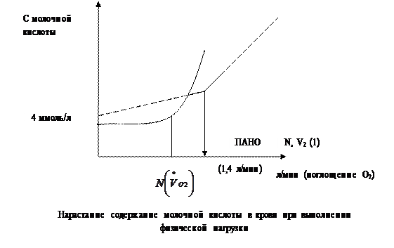 ↑ [СО2] ↑ отдачу О2 кровью; + ↑ отдачу ↓ рН, ↑ [лактата], ↑ Т; 2-3 дифосфоглищерат; ↓ О2. Низкое парциальное напряжение О2. в капилляре (< чем в аорте). 2. порог анаэробного обмена (ПАНО) – интенсивность физической нагрузки, или уровень потребления О2, при котором развивается переход на анаэробный обмен.