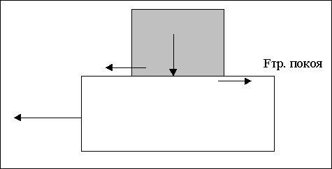 Рассмотрим взаимодействие бруска с поверхностью стола. Поверхность, соприкасающихся тел не является абсолютно ровной. Наибольшая сила притяжения возникает между атомами веществ, находящимися на минимальном расстоянии друг от друга, то есть на микроскопических выступах. Суммарная сила притяжения атомов, соприкасающихся тел столь значительна, что даже под действием внешней силы Максимальная сила трения покоя