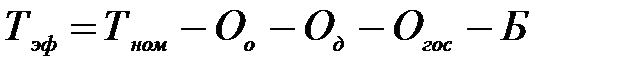 где ОО – основной отпуск, дн.; Од – дополнительный отпуск, дн.; О гос – отпуск, за выполнение общественных и государственных обя- занностей, дн.; Б – невыходы на работу по больничным листам, дн.