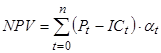 Чистая текущая стоимость (net present value – NPV) представляет собой разность дисконтированных на один момент времени (обычно на год начала реализации проекта) показателей дохода и инвестиционных расходов (капитальные вложения). Расчет производится по формуле