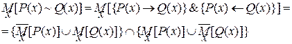 4. Импликация (→). Наличие свойства P для переменных x влечет за собой свойство Q.