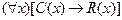 Заключение в том, что имеющееся свойство P(x) конкретизуется для определенного значения y. 1. 2. C(1) 3. C(1)→ R(1) 4. R(1) {ПО: 2, 3}