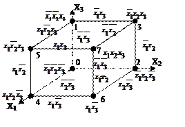 Договоримся, чтобы каждая вершина определяла x1& x2& x3, но для простоты будем указывать x1x2x3. если Каждой точке будет соответствовать значение функции. Иногда в вершинах указываем значение функции 1 или 0.