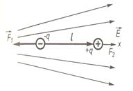 Таким чином, в неоднорідному електричному полі на диполь крім моменту пари сил, діє ще сила в напрямі зростання напруженості поля, яка прагне втягнути диполь в область сильнішого поля. Рис. 1.9