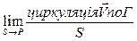 де V – швидкість циркуляції, Vi – дотична складова швидкості рідини в об’ємі циркуляція Аналогічно визначається циркуляція будь-якого вектора по довільному замкненому контуру. Тоді: циркуляція Якщо розглядати ламінарний рух рідини в річці, то швидкість біля дна дорівнює нулю і поступово збільшується при наближенні до поверхні води і лінії вектора швидкості будуть прямолінійними. Разом з тим, в полі з вигнутими лініями циркуляція може дорівнювати нулю. Циркуляція вектора характеризує властивості поля, які мають середні значення по поверхні. Щоб отримати середні значення в точці Р, потрібно зменшити розміри контуру Г, відповідно зменшиться циркуляція і площа контуру. Відношення циркуляції вектора до площі S прямує до деякої границі, яка використовується для характеристики поля в точці Р. Візьмемо контур Г, який лежить в площині, яка проходить через точку Р і розглянемо вираз: