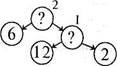 Мал. 127 Учитель проводить від цього кружечка дві стрілки і до кожної стрілки креслить по кружечку, а потім запитує: — Чи знаємо скільки саджанців яблунь посадили? (6). Запишемо це у лівому кружечку. Чи відомо, скільки саджанців груш посадили? (Ні). Поставимо в правому кружечку знак запитання. Що треба знати, щоб знайти, скільки саджанців груш посадили? (Скільки рядів груш посадили і по скільки саджанців груш садили в ряду). Учитель від правого кружечка проводить дві стрілки і креслить два кружечки. — Чи знаємо, скільки рядів саджанців груш? (2). Скільки саджанців груш садили в ряд? (12). Запишемо в кружечки числа 12 і 2. Тепер можна скласти план розв'язування задачі. Спочатку дізнаємося, скільки саджанців груш посадили в 2 ряди. Це перше запитання (учитель ставить цифру 1 біля відповідного кружечка). Потім дізнаємося, скільки всього дерев посадили. Це друге й останнє запитання задачі. Отже, щоб розв'язати складену задачу, потрібно її розкласти на прості задачі і до кожної знайти відповідь.