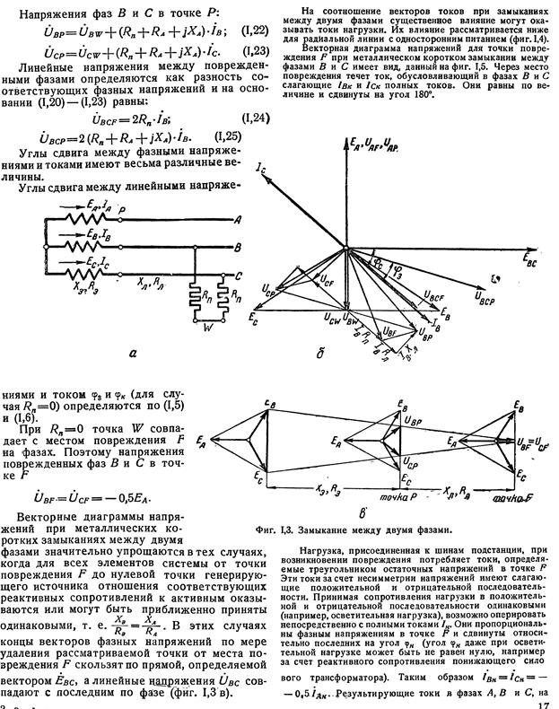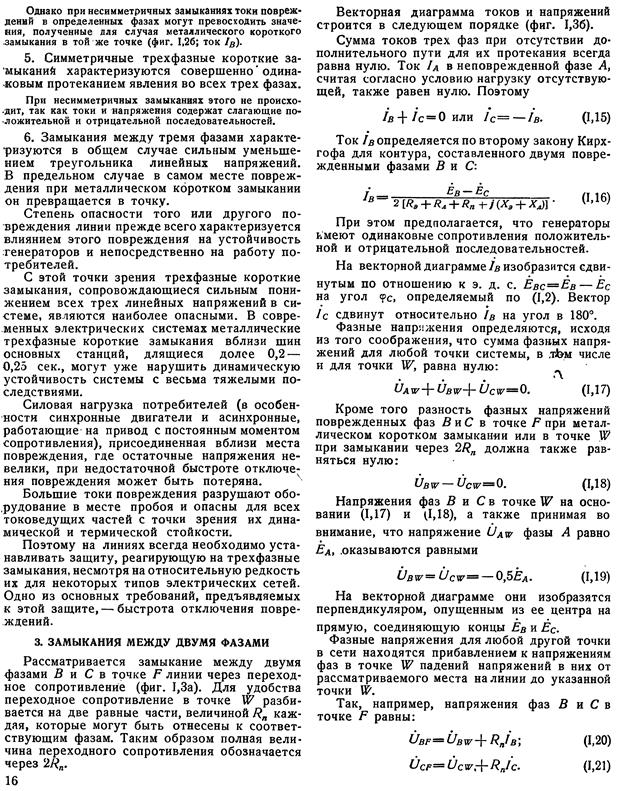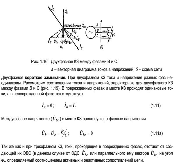 Вопрос 4: Опишите применение в электроэнергетике: Расчет параметров прямой последовательности генераторов и синхронных компенсаторов. При расчете начального значения периодической составляющей тока трехфазного КЗ должны быть учтены все синхронные генераторы и компенсаторы. Для этого нужно нужно расчитать их параметры прямой последовательности. Расчет действующего значения периодической составляющей тока КЗ от синхронного генератора (компенсатора) или нескольких однотипных синхронных генераторов (компенсаторов), находящихся в одинаковых условиях по отношению к точке КЗ, следует вести в следующем порядке: 1) составить схему замещения для определения начального значения периодической составляющей тока КЗ от синхронной машины (или группы машин) и найти относительный ток 2) по кривой 3) определить действующее значение периодической составляющей тока КЗ от синхронной машины (или группы машин) в килоамперах в момент времени где Вопрос 5: Раскройте содержание следующих терминов: Векторная диаграмма напряжений в месте двухфазного короткого замыкания.