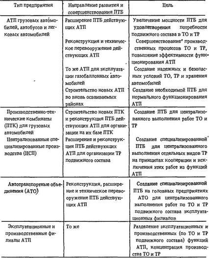 Таблица 6.2, Основные направления развития и совершенствования ПТБ
