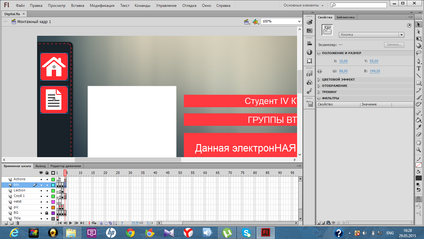 Рисунок 16. Код языка ActionScript 3.0 для открытия лекционного материала. Графическая часть (дизайн)