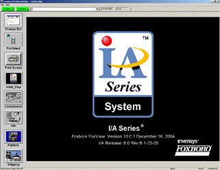 Рисунок 6.8- Окно FoxView. Важным понятием при работе в FoxView является понятие рабочей среды, или просто среды. Среда определяет внешний вид окна и предоставляет различный уровень доступа к его объектам. Изначально определено четыре среды: · Initial · Operator · Process_Eng · Softw_Eng Каждой среде соответствует три одноименных (имя среды) файла разных типов (.env,.mbr и.), находящихся в каталоге D: /opt/env. В них прописаны все элементы окна FoxView и уровни доступа. Создание новых троек файлов с другими именами позволяет создать новые среды. Среда Softw_Eng предоставляет максимальный доступ к конфигураторам системы. Важным элементом окна является системная панель, в частности кнопки System и Process (см. рисунок 6.8, слева вверху), отображающие соответственно неисправности аппаратных средств системы и алармов процесса. Они могут быть красного или зелёного цвета: