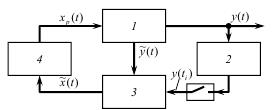 1 – объект; 2 –анализатор качества; 3 – вычислительное устройство; 4 – регулятор Рисунок 7.20 -. Блок-схема АСР параметра качества продукта: