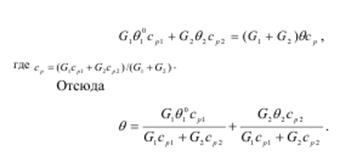 Остановимся на особенностях статической характеристики собственно процесса смешения. Рассмотрим, для примера, аппарат непрерывного действия, в котором смешиваются два потока с расходами G1 и G2, температурами θ 1 и θ 2, удельными теплоёмкостями Cp1 и Cp2 (рисунок. 8.2).
