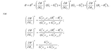 Как видно из (8.1), характерной особенностью теплообменников смешения является нелинейность статических характеристик по температурным каналам, θ 1 – θ и θ 2 – θ. При условии малых отклонений координат объекта от их заданных значений можно провести линеаризацию зависимости (81) и найти приближенно коэффициенты усиления объекта по каждому каналу. Обозначим заданные значения входных и выходных координат через