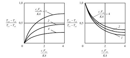 Полученная зависимость в виде семейства кривых приведена на рисунке 8.11, где показано влияние массовых расходов теплоносителей на температуру Tx2.