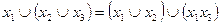 Зависимость между значениями входных и выходного сигналов, выраженная в этой таблице, характеризует определенную стратегию переключения, и поэтому ее можно рассматривать как алгоритм управления. Приведенная таблица включения соответствует реализации некоторой логической зависимости общего вида y = f (x1, x2, x3), которую можно представить, воспользовавшись элементарными функциями алгебры логики. При этом принимается, что любая, сколь угодно сложная функция алгебры логики аналитически выражается через три элементарные операции: логическое сложение, логическое умножение и отрицание. Трем указанным элементарным функциям соответствуют следующие таблицы включения, в которых использованы обозначения в символах алгебры логики: Логическое сложение (“ИЛИ”) … y = x1 Логическое умножение (“И”) … y = x1 ∩ x2 (таблица 5.4) Отрицание (“НЕ”) … y = Любую сложную логическую зависимость можно представить как комбинацию элементарных функций алгебры логики Использование таблиц включений в качестве исходного материала для составления алгоритма управления, выражаемого в терминах алгебры логики, не всегда оказывается возможным. Применение этих таблиц оправдано лишь тогда, когда зависимость между сигналами относительно проста. При большом числе независимых переменных указанный метод становится неудобным, так как составление таблиц связано с перебором всех возможных сочетаний значений аргументов. Например, при N =10 число строк таблицы включений составляет