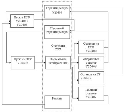 Рисунок 13.6 - Блок-схема взаимосвязей состояний ТОУ
